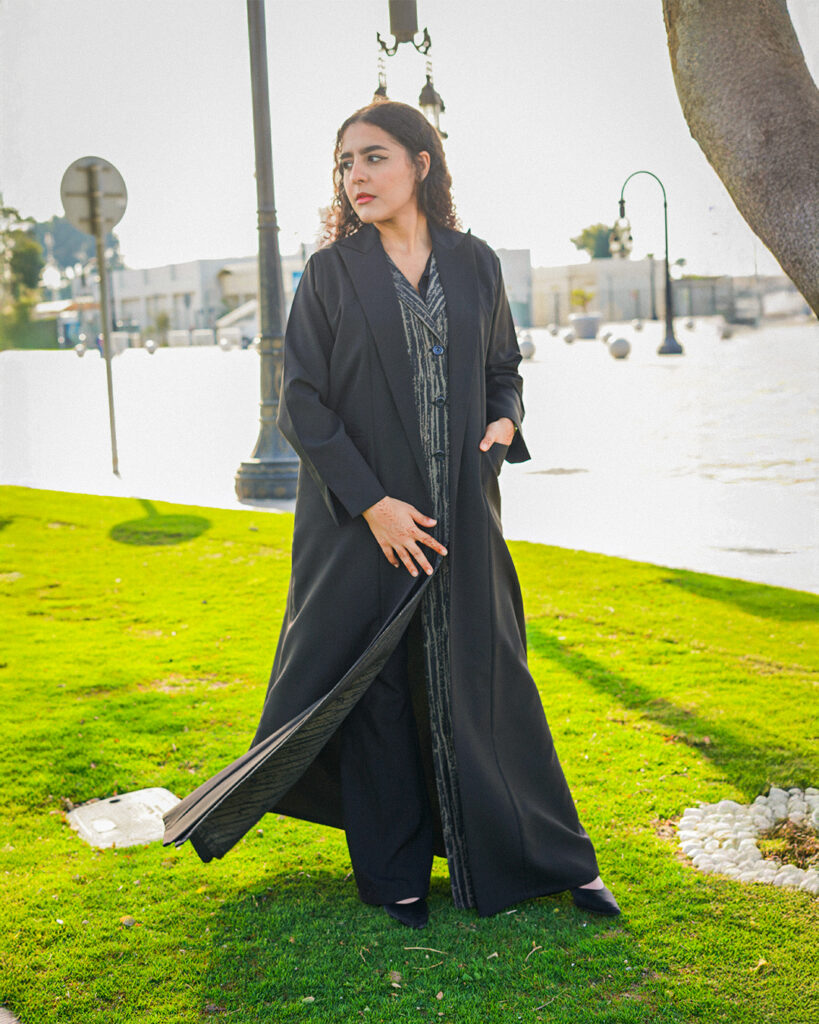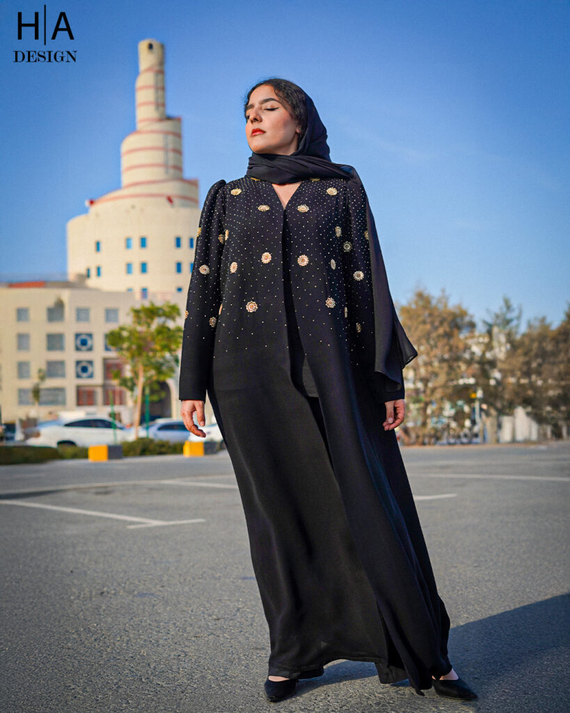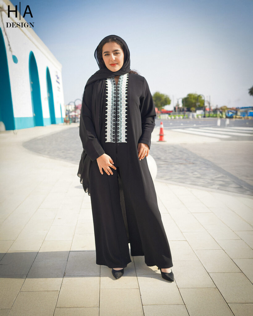 Designed with modern precision, this half abaya features the latest computer embroidery work. Stylish, elegant, and perfect for everyday wear.
